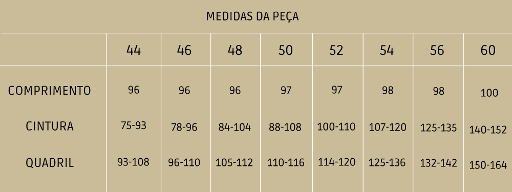 Disponível do tamanho 50 ao 60 — modelagem que abraça o corpo com caimento impecável.