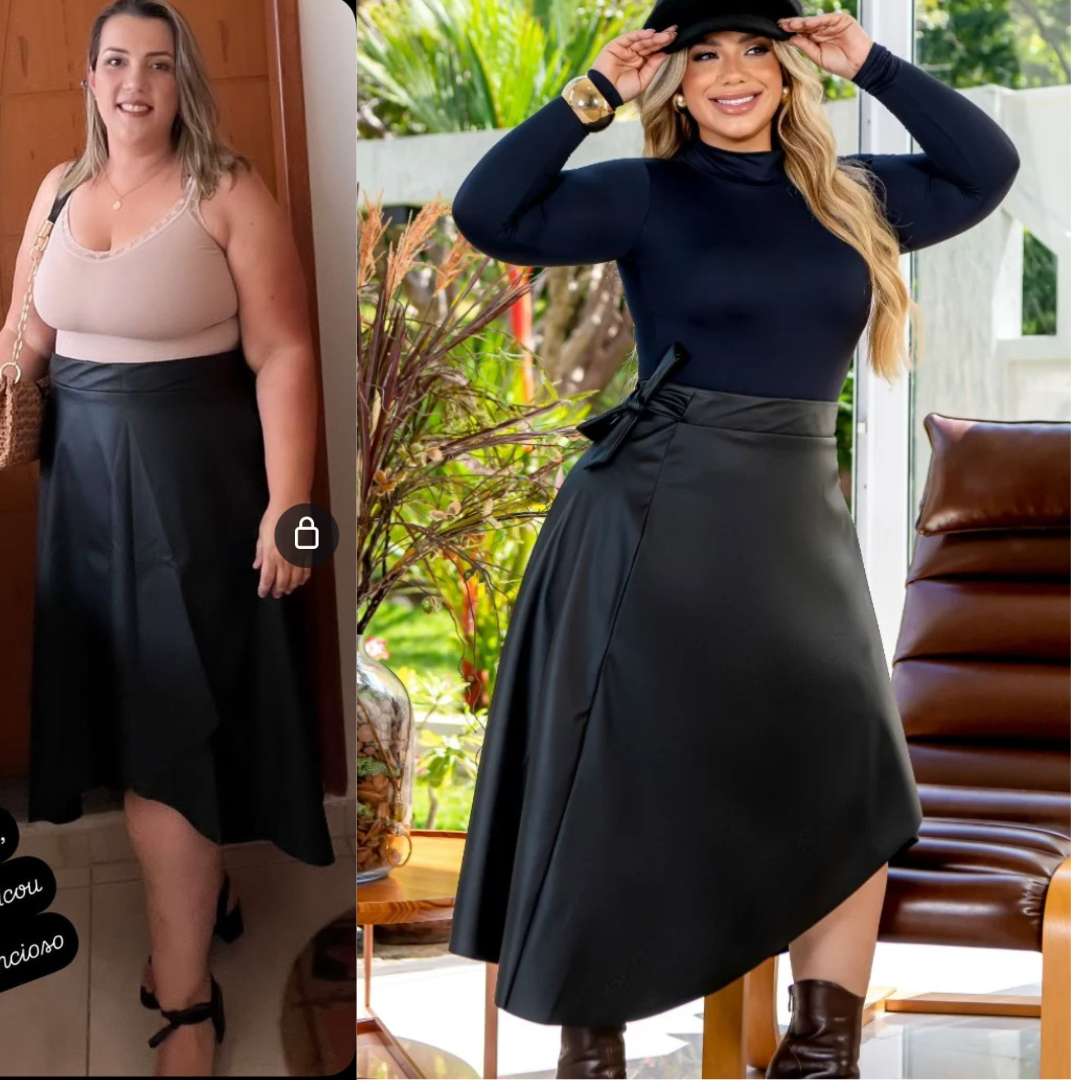 A Saia Montana Plus Size é a peça ideal para criar looks modernos e cheios de atitude. Produzida em courinho sintético com elastano, possui modelagem transpassada que permite ajuste ao corpo, garantindo conforto e caimento perfeito.